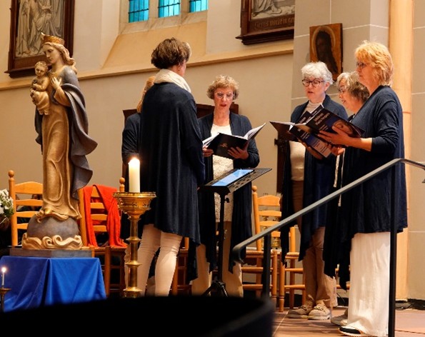 Onder leiding van koorleider Jaap Roos klonk het koor in volle bezetting van 13 zangers. Speciaal voor deze jubileum Maria Vespers, gewijd aan de heilige maagd Maria, verleende de vrouwenschola ‘Voces Caelestes’ uit Nijmegen onder leiding van Hanneke van der Grinten haar bijzondere medewerking. De combinatie van mannen en vrouwenstemmen resulteerde in een boeiende muzikale middag, waarin de tijdloze schoonheid van het Gregoriaans volledig tot zijn recht kwam.