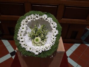 Nadat een aantal bloemendames na jarenlange trouwe inzet stopten en een van de bloemendames helaas overleed, zijn we momenteel met drie dames die de bloemversiering verzorgen. Agnes, Dorie en Edith. Hierbij worden we ondersteund door Jolanda m.b.t. de inkoop. Zij verzorgt ook de zijden bloemstukken zodat deze aangepast worden aan het seizoen. Wanneer er een hoogfeest of speciale dienst is dan zorgen wij voor bloemwerk van verse bloemen passend bij dat feest of thema. Soms is er ook het verzoek voor bloemwerk bij een uitvaart. Per keer kijken we wanneer we samen komen. Om het leuk te houden is het fijn dat er tussendoor dus zijden bloemstukken zijn. Natuurlijk zijn nieuwe mensen altijd welkom bij onze groep. Lijkt het je leuk, neem dan contact op met de locatieraad.